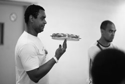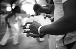 Le rôle du pandeiro dans la musique est d'accentuer le "beat" grave et profond de l'atabaque avec son son plus haut et plus aigu. Les symbales créent une riche texture dans le beat. C'est un des instruments essentiels dans la roda.